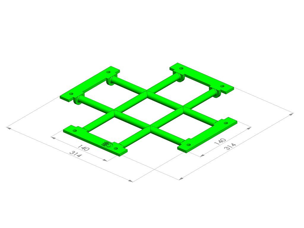 Rozměr 314 × 314 mm vytváří čtyři napojovací směry a umožňuje průjezd rovně. Kulaté profily s menší kontaktní plochou zvyšují náročnost na balanc a přesnost řízení.